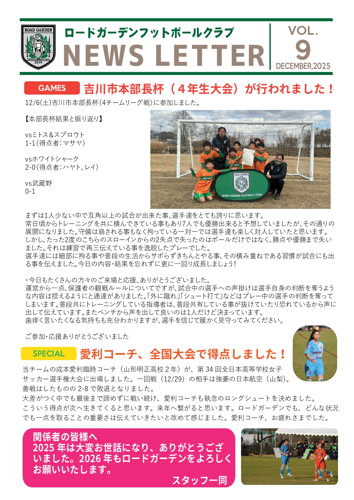 【2025年12月】ロードガーデンフットボールクラブ NEWS LETTER VOL 9