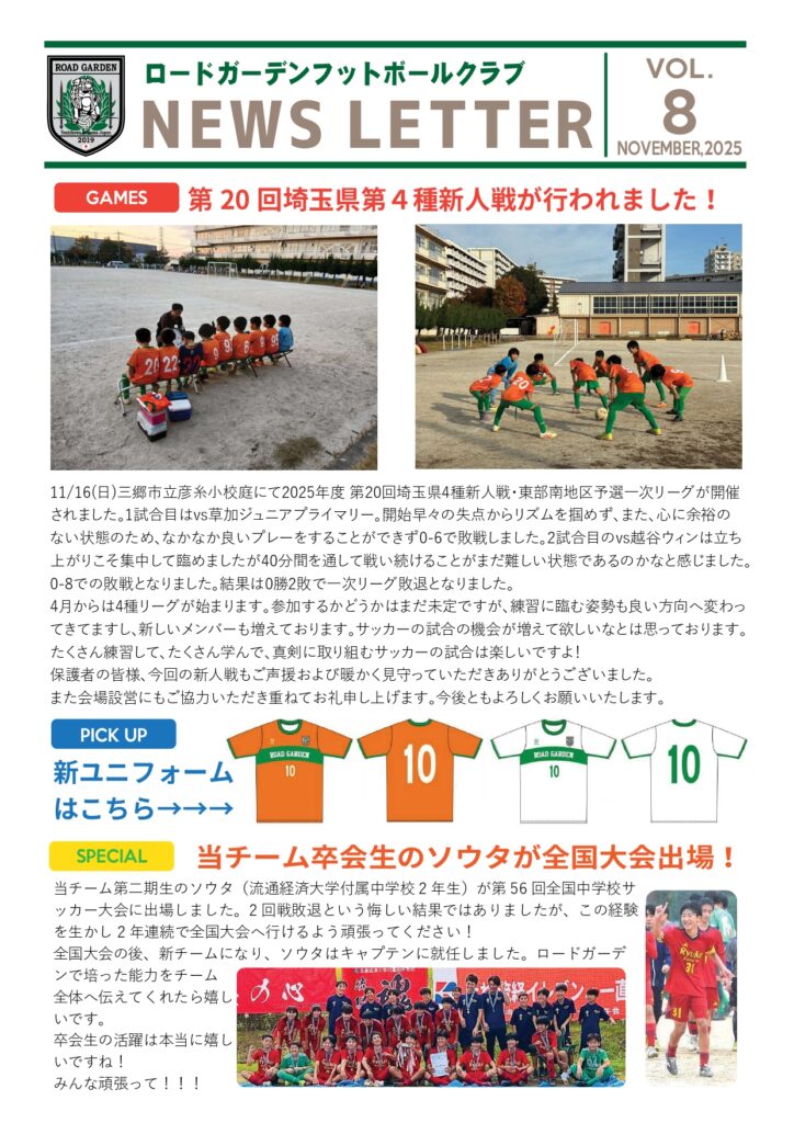 【2025年11月】ロードガーデンフットボールクラブ NEWS LETTER VOL 8